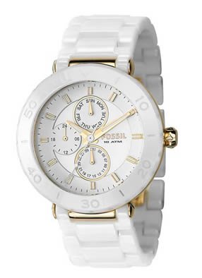 Cheap Fossil Women's CE1004 White Ceramic and Gold Bracelet White Analog Dial Multifunction Watch Review