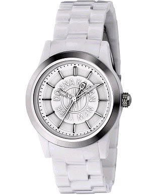 Get style with this ladies watch from DKNY. A round stainless steel case, silver dial with silver tone indices and the “Donna Karan New York” logo circling in the center, and a white plastic band all make a fantastic appearance. The analog display features a high quality quartz movement which is backed by the full manufacturer warranty. This watch is made of stainless steel, plastic, and is water resistant to (water resistant to 50 meters (165 feet).